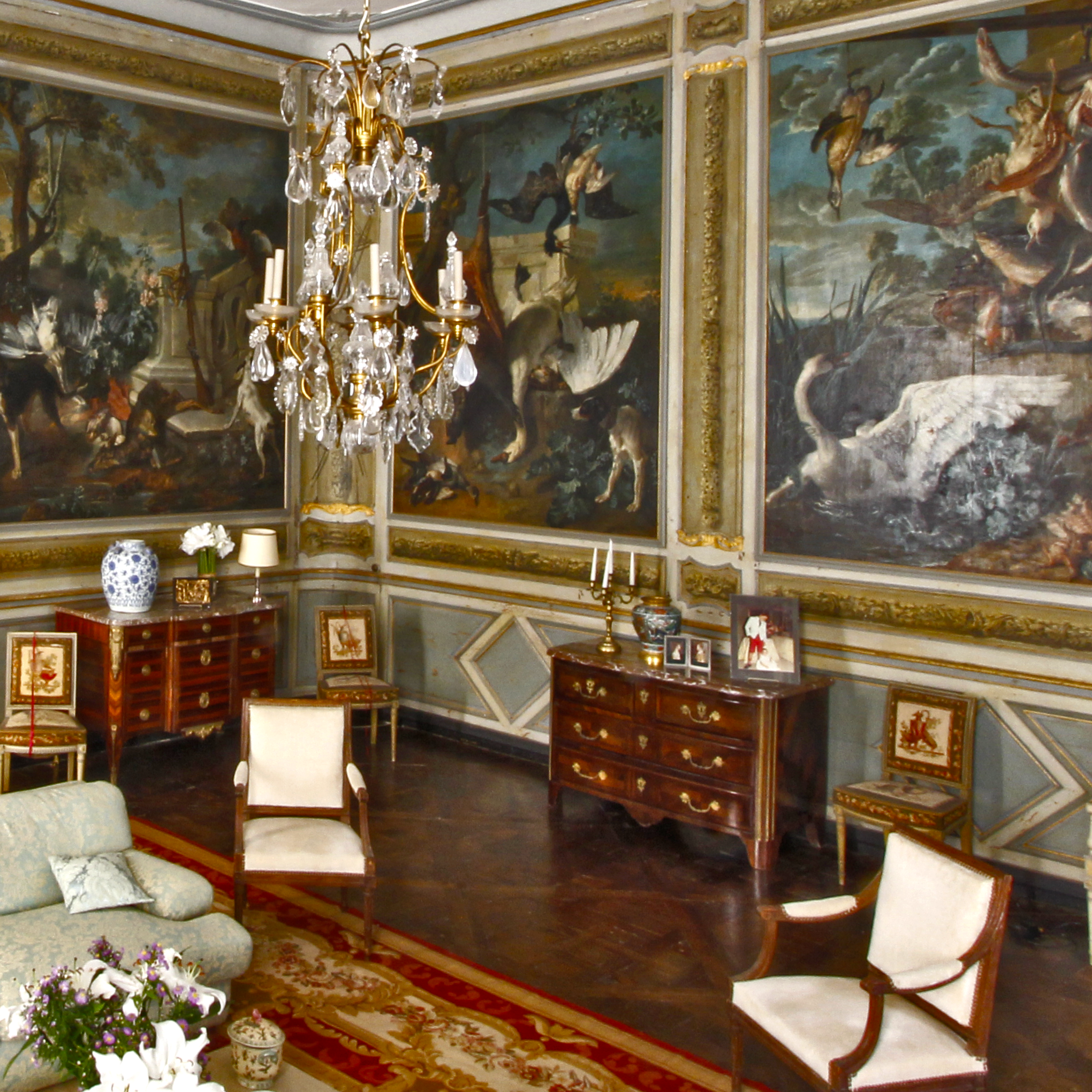 Sauvé et embelli à la régence par les artistes soutenus par Jean-François Leriget de la Faye, ses décors authentiques et rescapés des invasions multiples des Prussiens, sont encore aujourd’hui remarquables et ouverts au public. Comme le témoigne cette peinture cachée trois siècles derrière le miroir d’un salon aux toiles monumentales de Jean-Baptiste Oudry. Découvrez les débuts de l’art galant et d’étonnantes peintures illustrant des œuvres croustillantes de Jean de La Fontaine.
